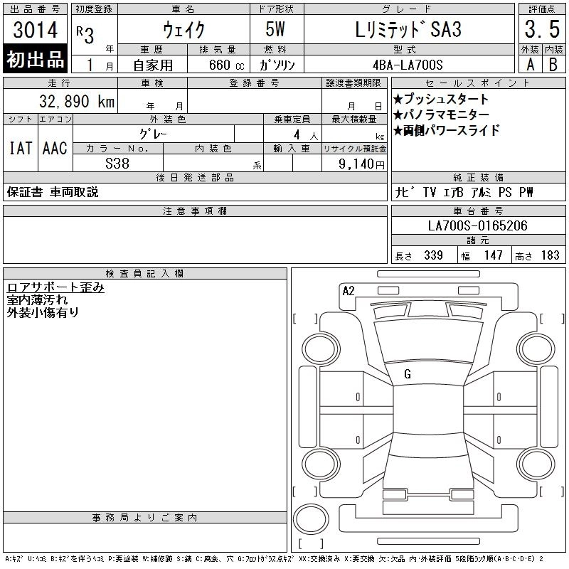 Статус выставлен на аукцион Лот 3014 Аукцион CAA Chubu Дата аукциона 10.12.2025
