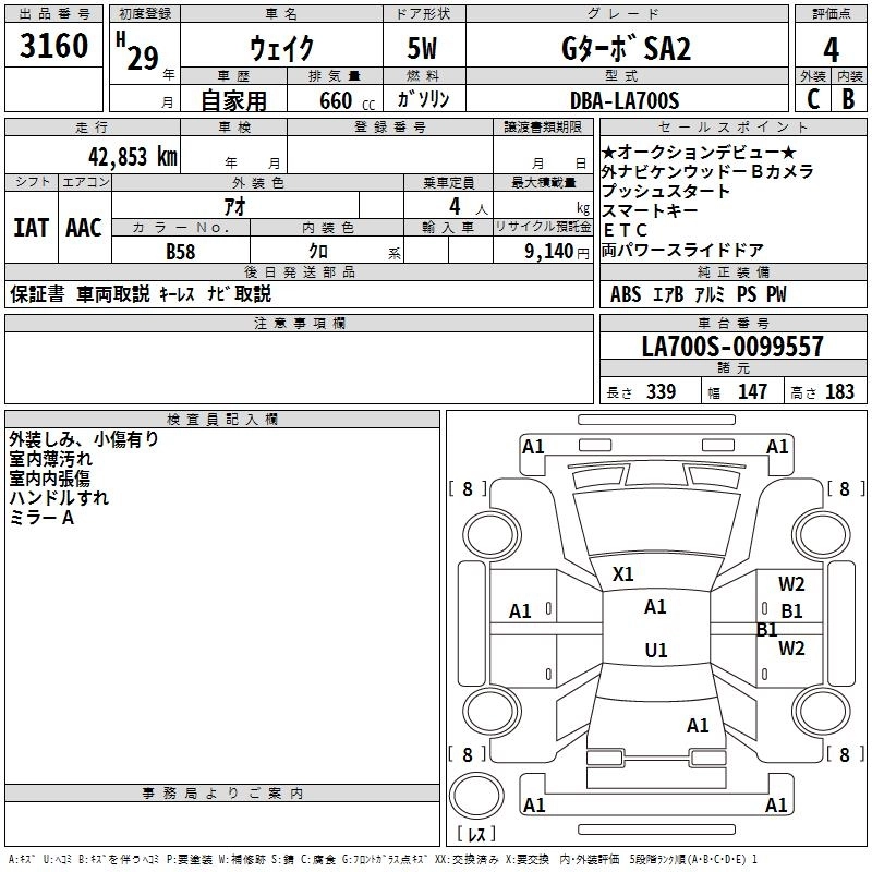 DAIHATSU WAKE 2017 г., лот № 3160