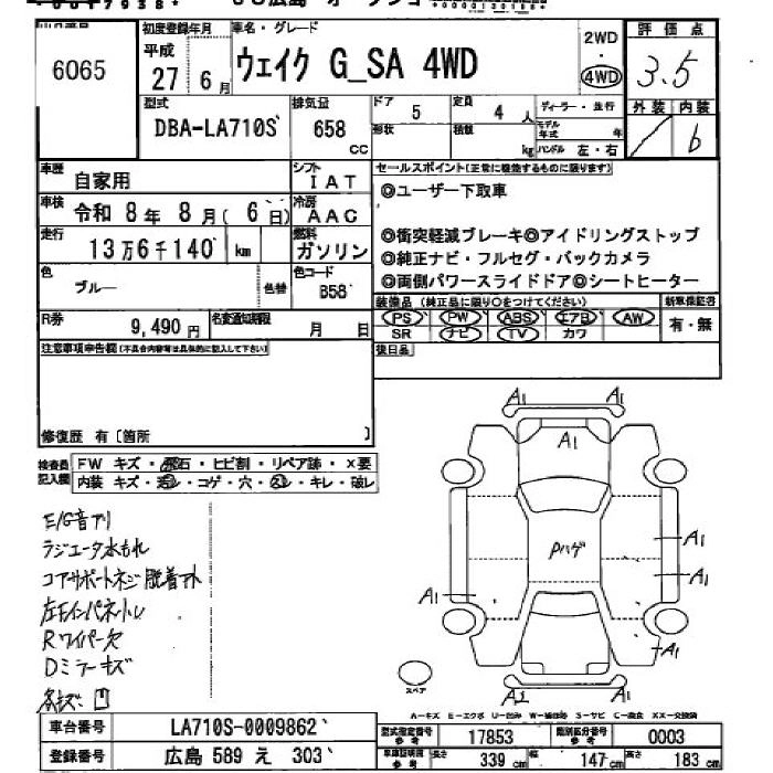 DAIHATSU WAKE 2015 г., лот № 6065