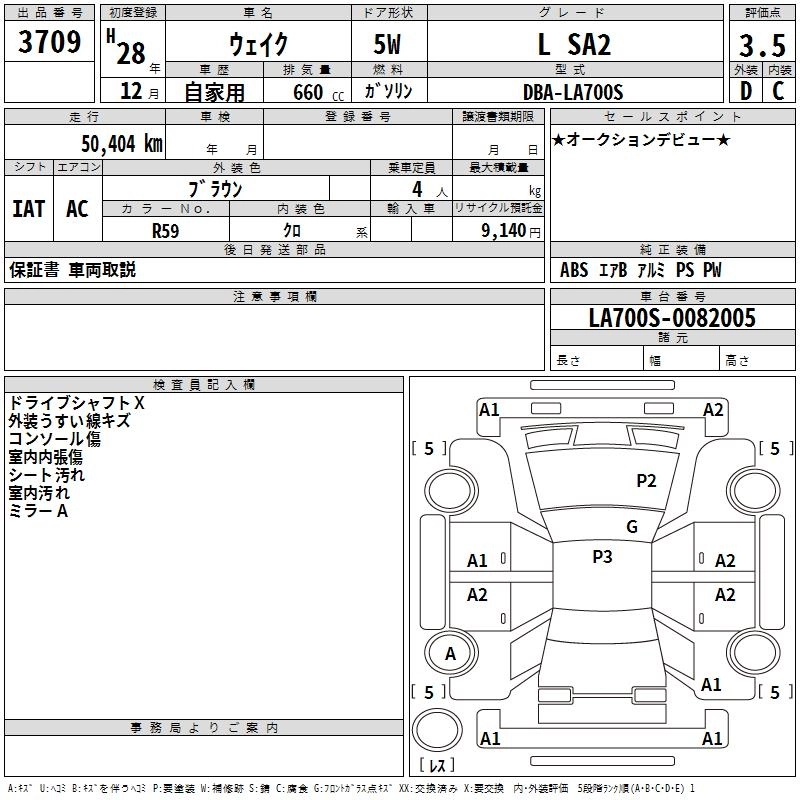 DAIHATSU WAKE 2016 г., лот № 3709