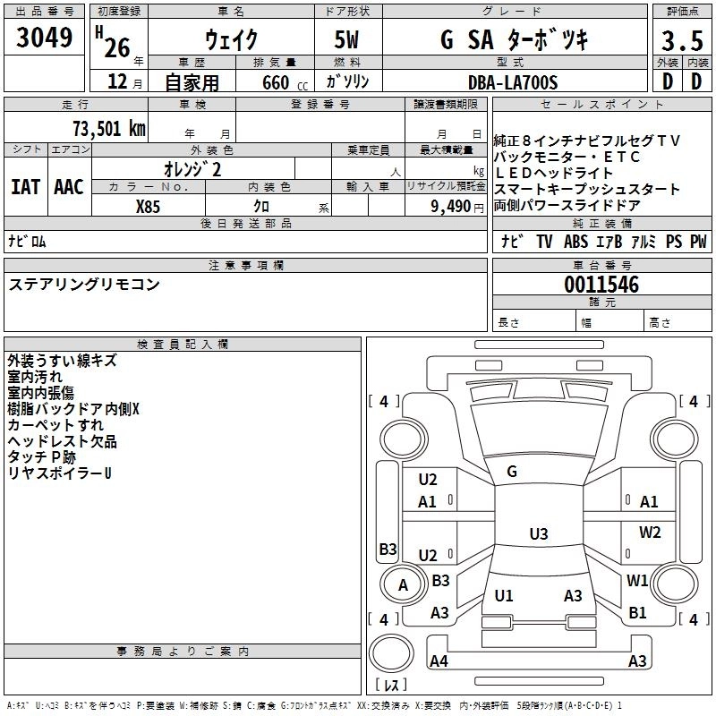 DAIHATSU WAKE 2014 г., лот № 3049