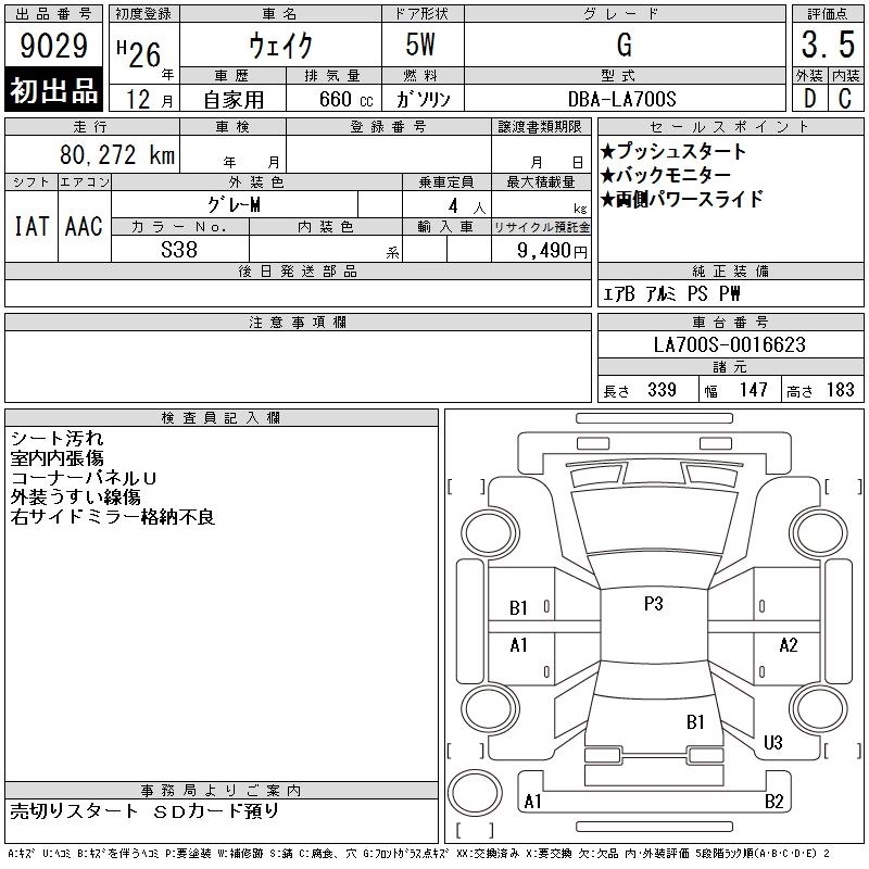 DAIHATSU WAKE 2014 г., лот № 9029