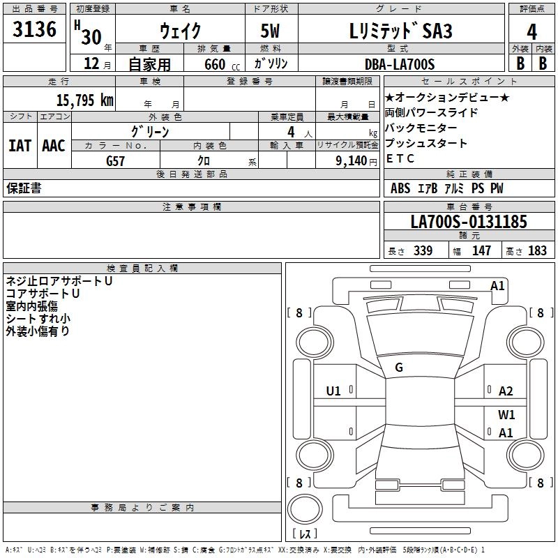 DAIHATSU WAKE 2018 г., лот № 3136