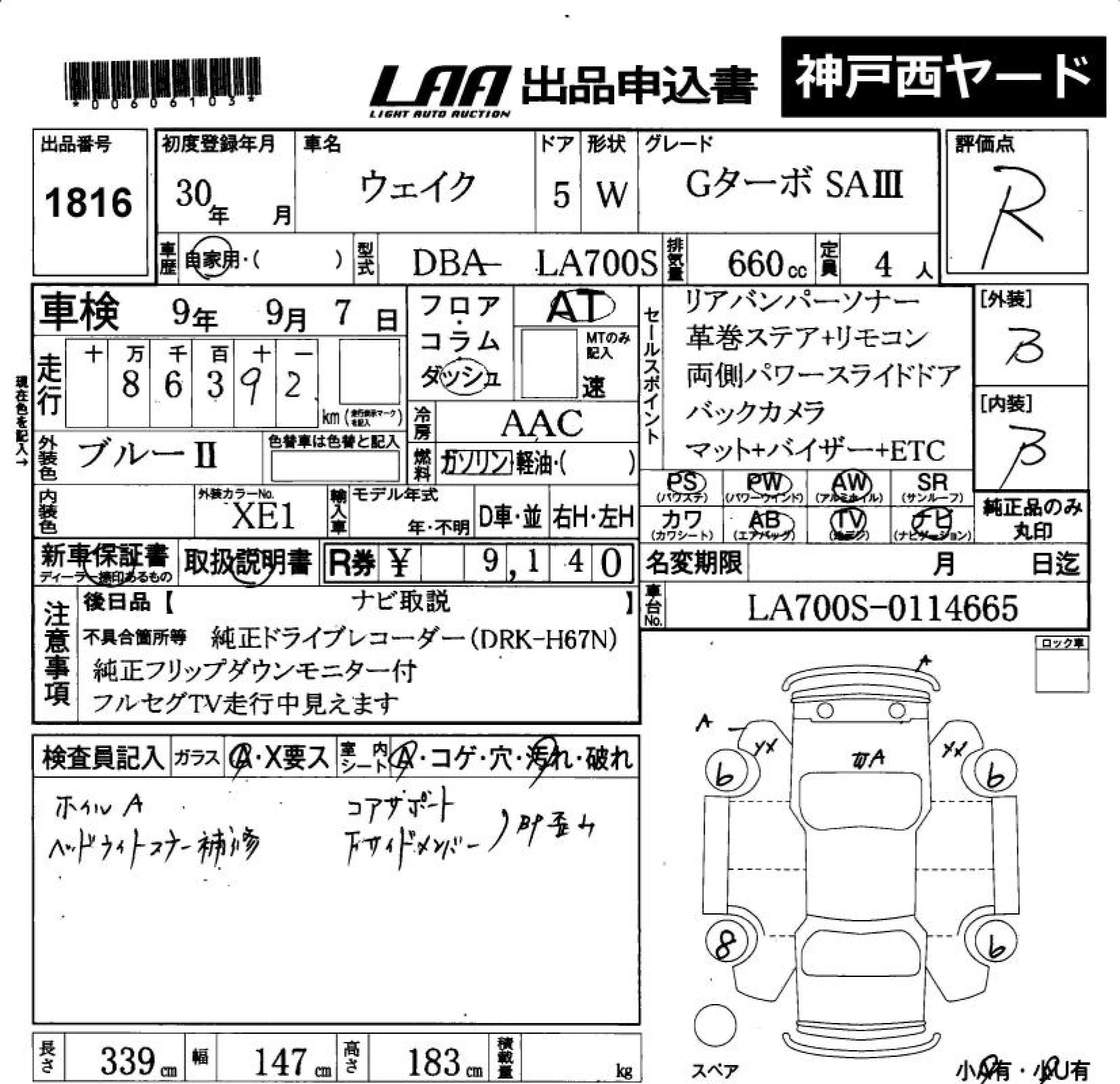 Статус не продан Лот 1816 Аукцион LAA Okayama Дата аукциона 23.01.2026