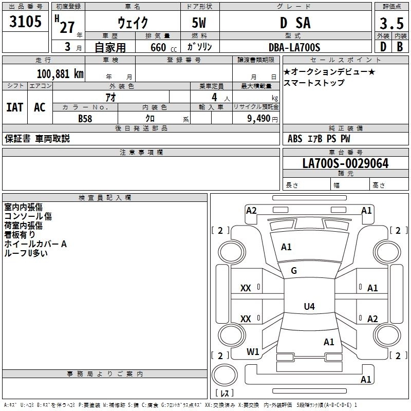 DAIHATSU WAKE 2015 г., лот № 3105