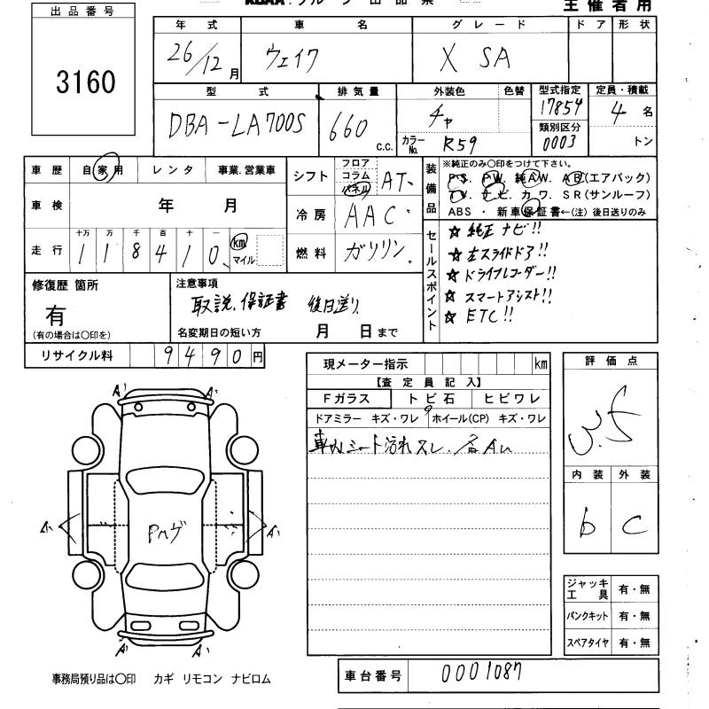 Год выпуска2014 Пробег 118 000 км КузовLA700S КомплектацияX SA