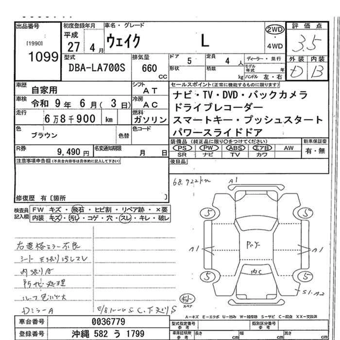 Год выпуска2015 Пробег 69 000 км КузовDBA-LA700S КомплектацияL