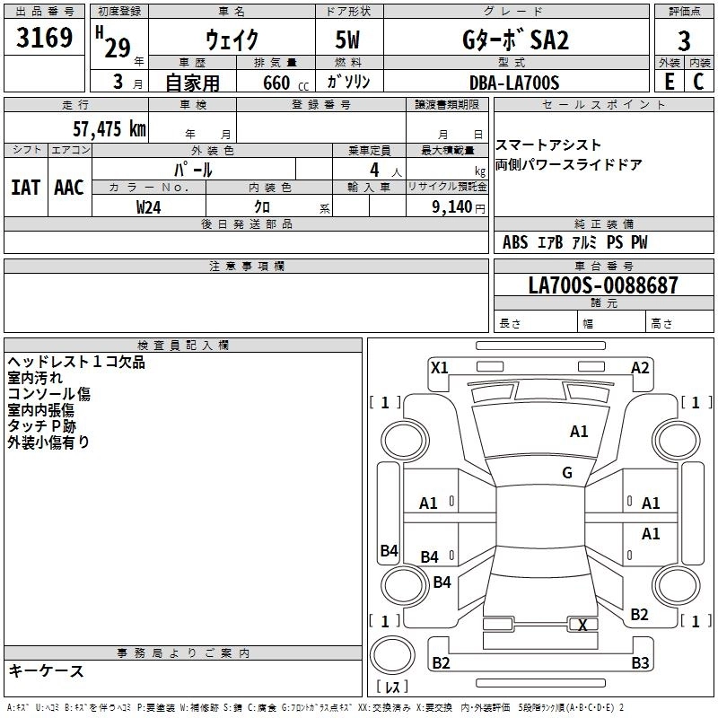 DAIHATSU WAKE 2017 г., лот № 3169