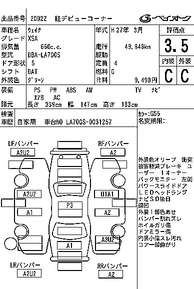 DAIHATSU WAKE 2015 г., лот № 20022