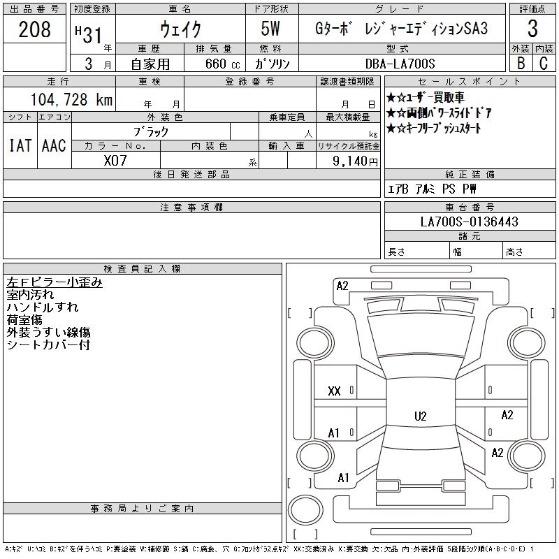 DAIHATSU WAKE 2019 г., лот № 208