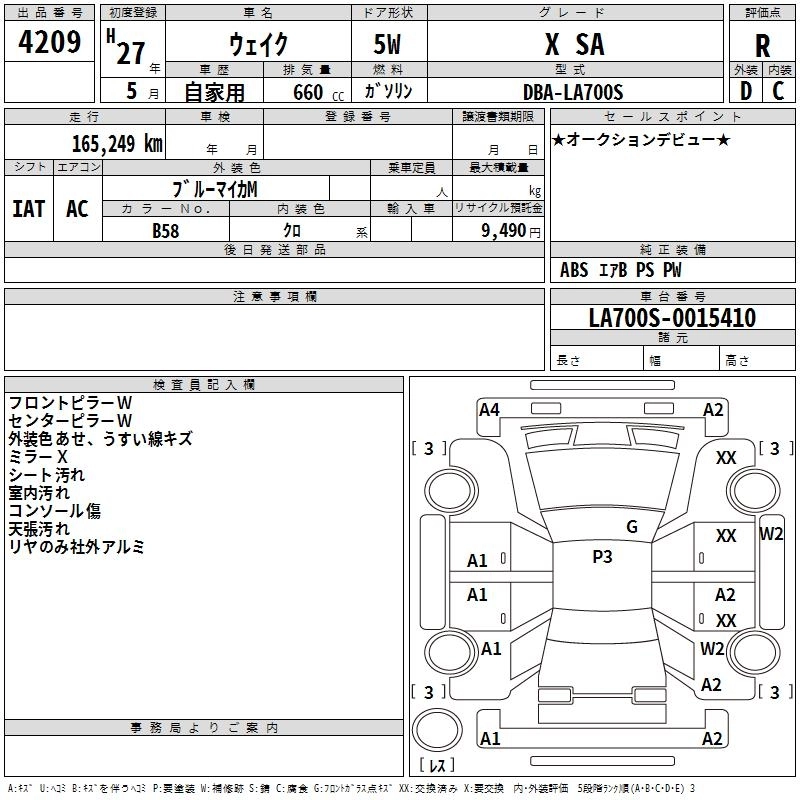 DAIHATSU WAKE 2015 г., лот № 4209