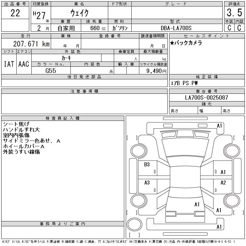 DAIHATSU WAKE 2015 г., лот № 22