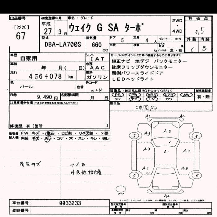 Статус выставлен на аукцион Лот 67 Аукцион JU Saitama Дата аукциона 10.03.2026