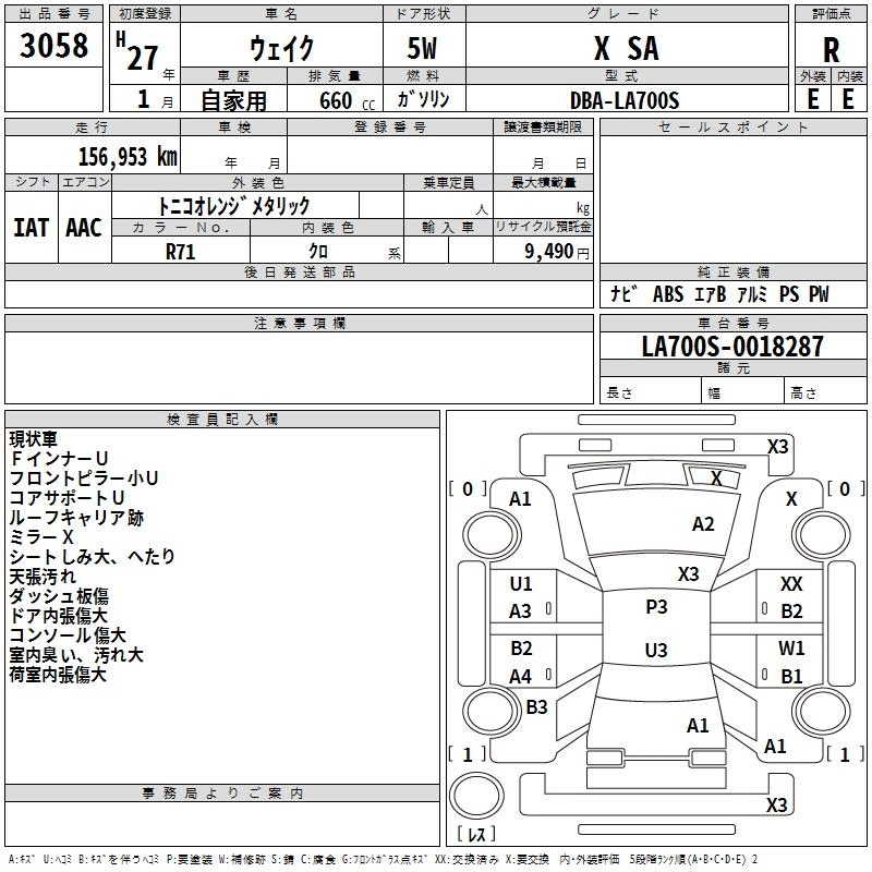 DAIHATSU WAKE 2015 г., лот № 3058
