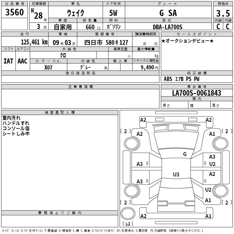 DAIHATSU WAKE 2016 г., лот № 3560