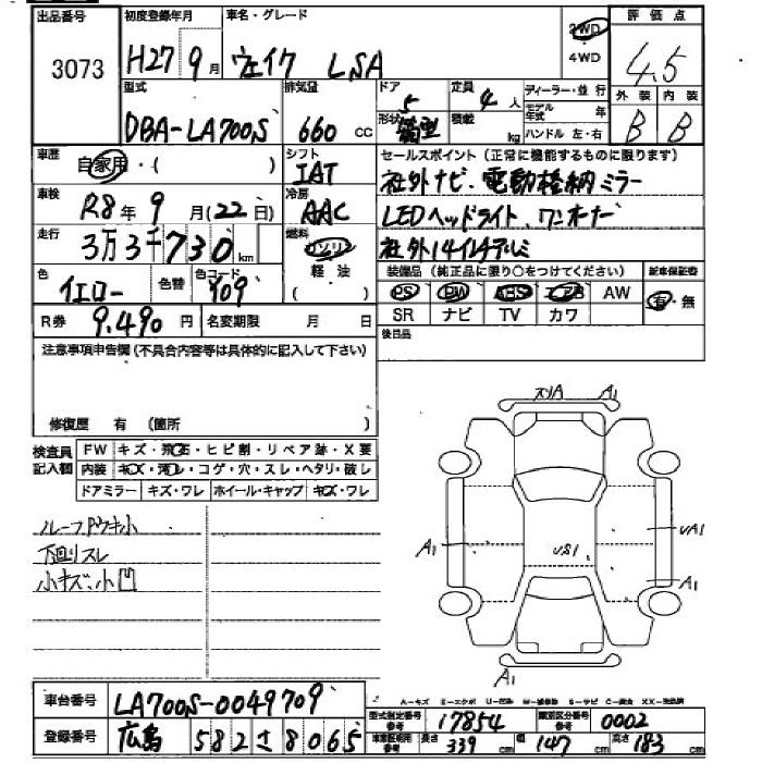 DAIHATSU WAKE 2015 г., лот № 3073