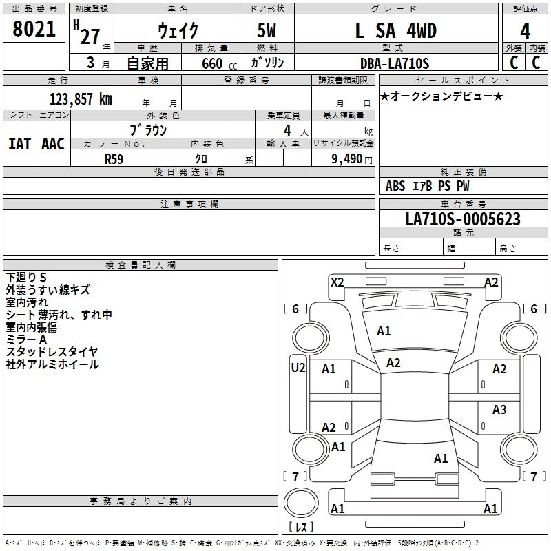 DAIHATSU WAKE 2015 г., лот № 8021
