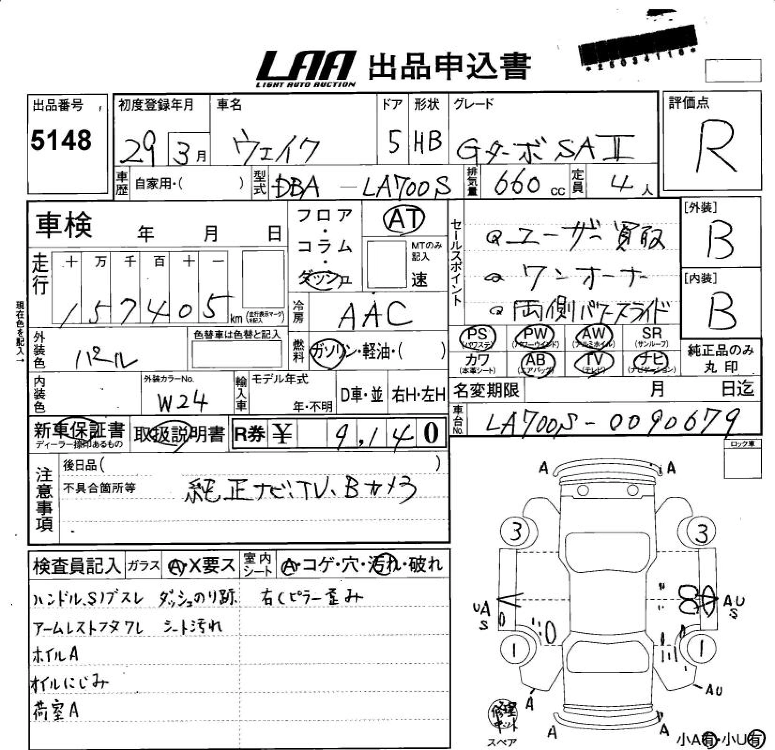 DAIHATSU WAKE 2017 г., лот № 5148