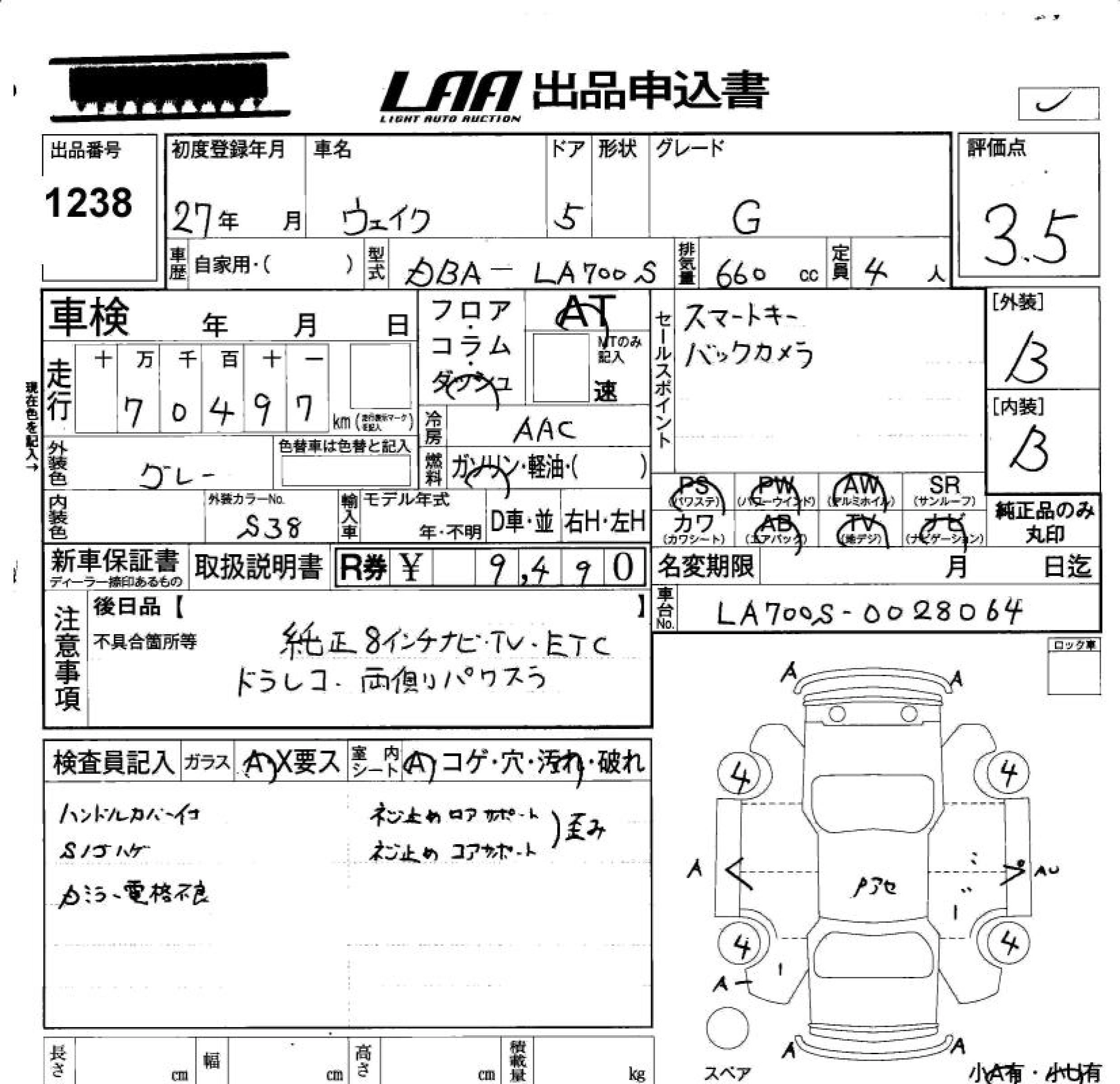 Год выпуска2015 Пробег 70 000 км КузовLA700S КомплектацияG