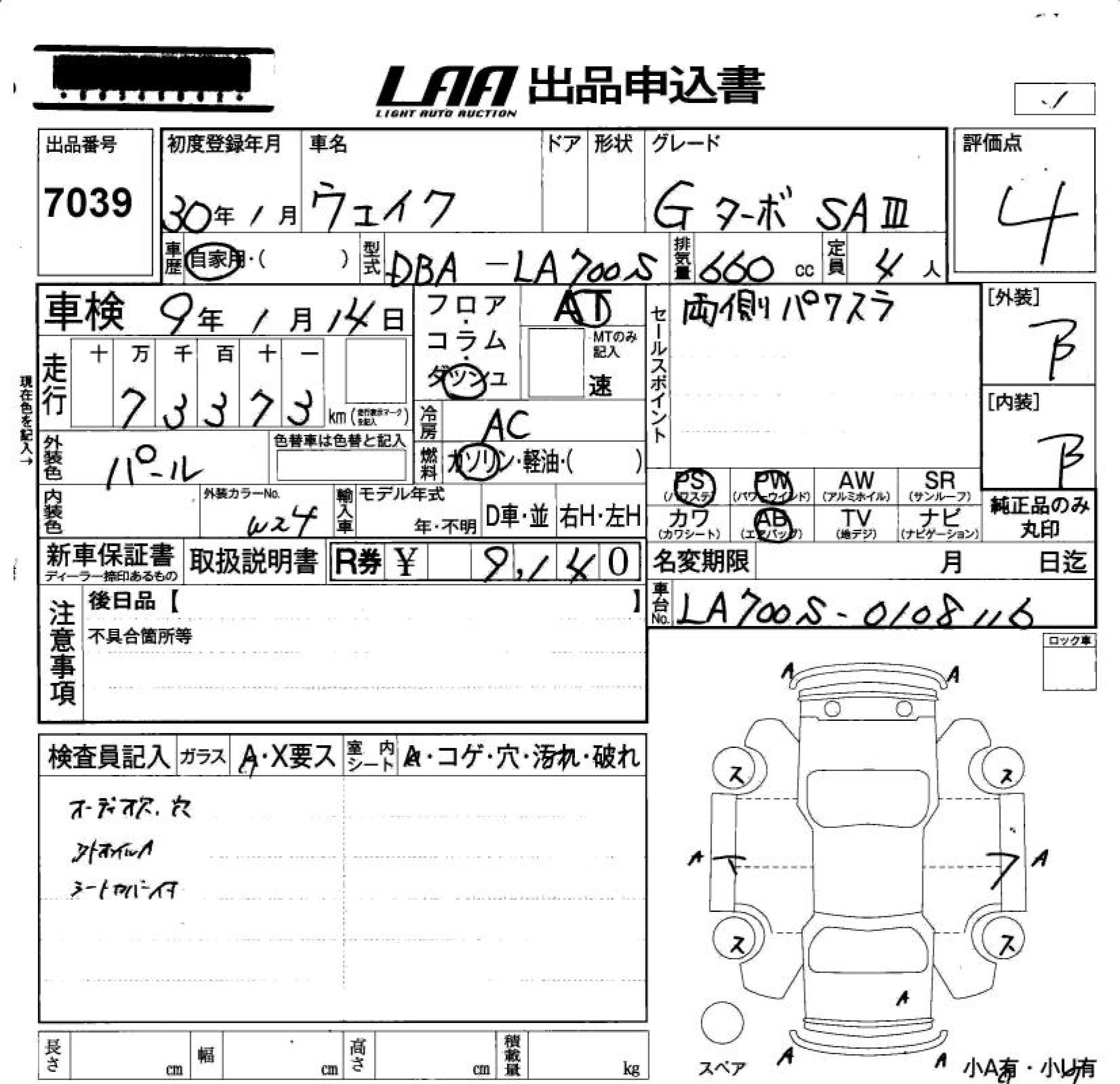 Статус выставлен на аукцион Лот 7039 Аукцион LAA Okayama Дата аукциона 13.03.2026