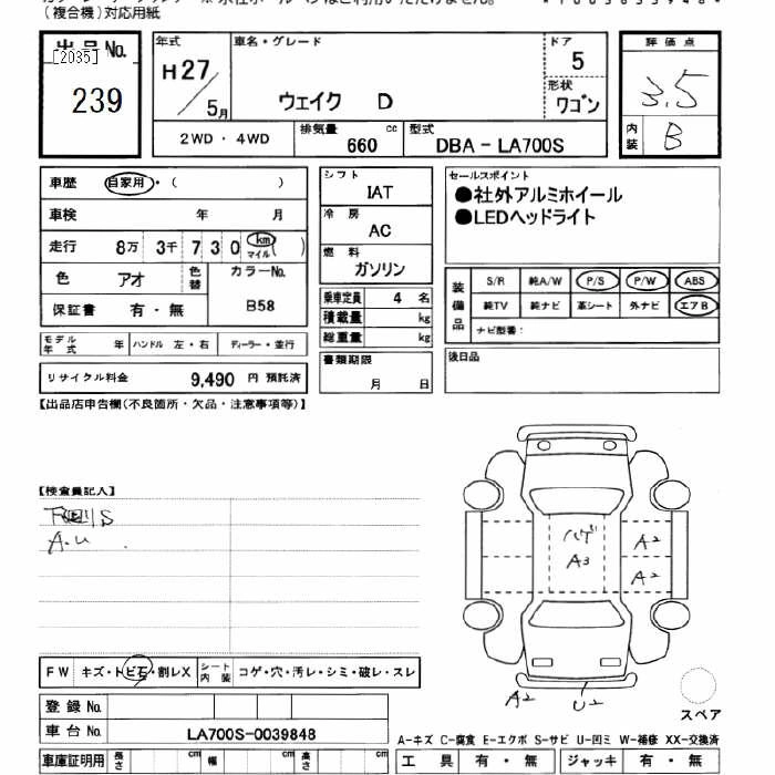 DAIHATSU WAKE 2015 г., лот № 239