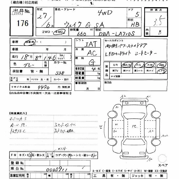 DAIHATSU WAKE 2015 г., лот № 176