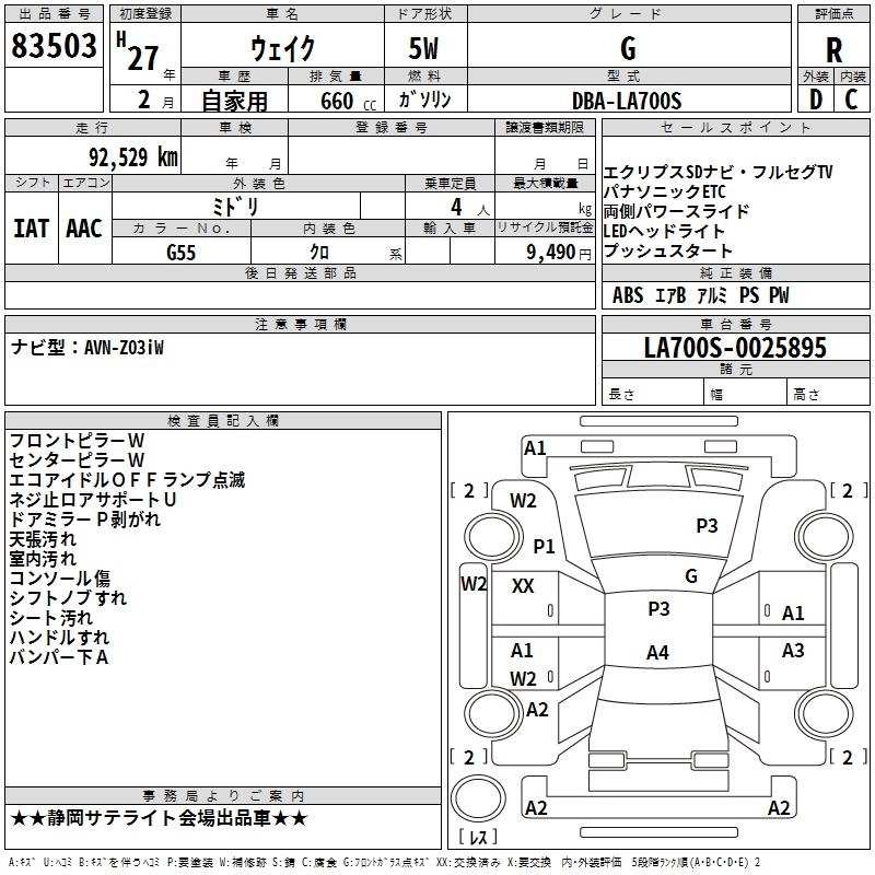 DAIHATSU WAKE 2015 г., лот № 83503