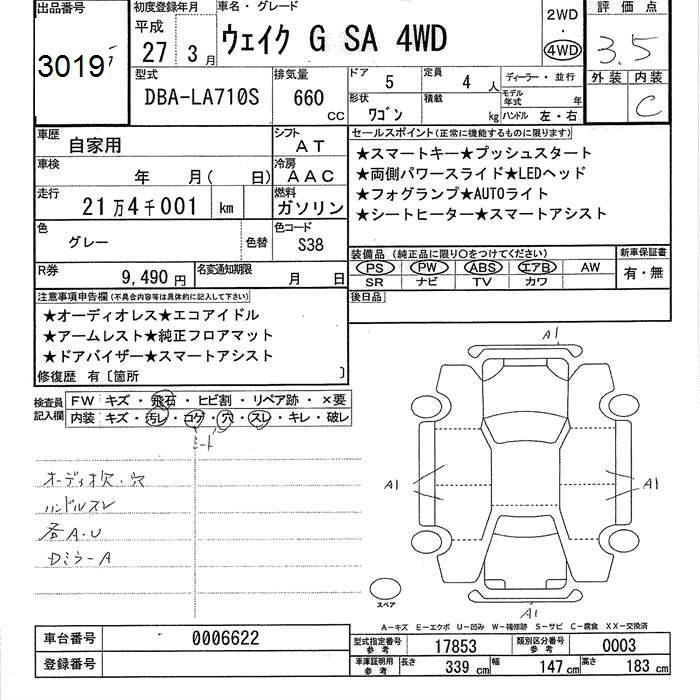 DAIHATSU WAKE 2015 г., лот № 3019