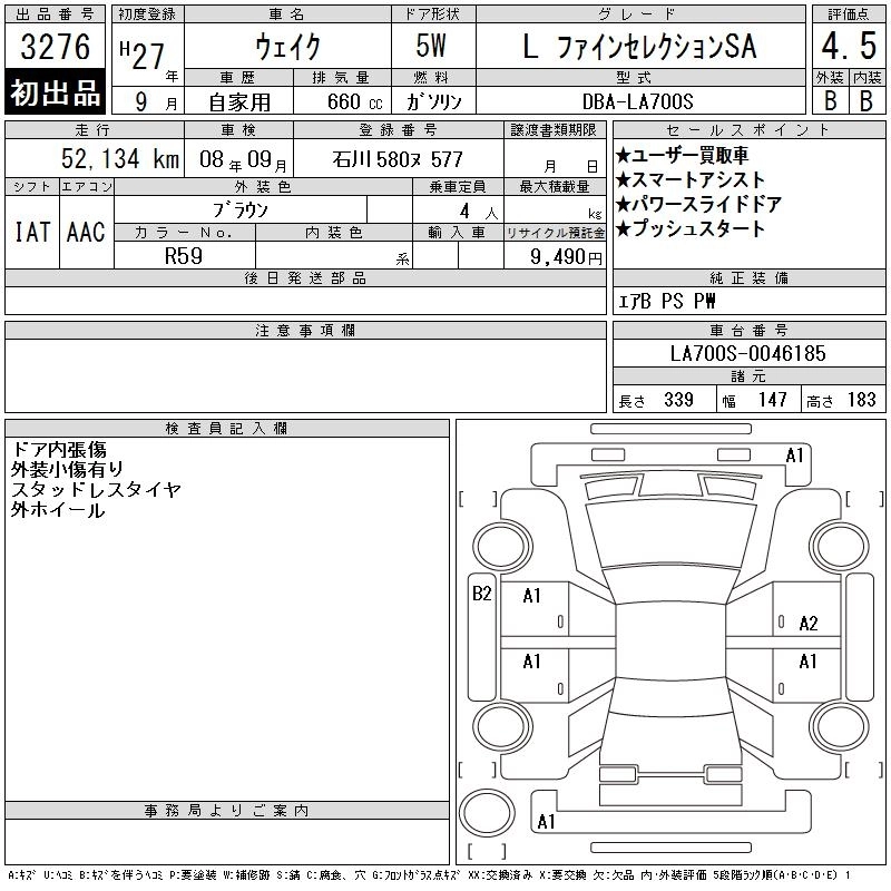 DAIHATSU WAKE 2015 г., лот № 3276