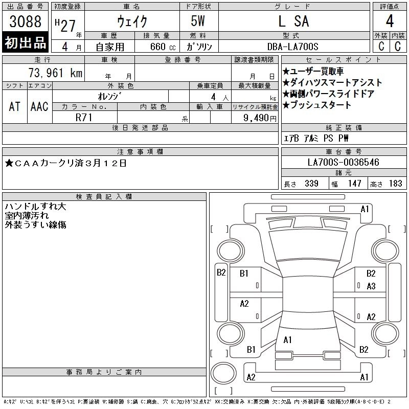 Статус выставлен на аукцион Лот 3088 Аукцион CAA Chubu Дата аукциона 18.03.2026
