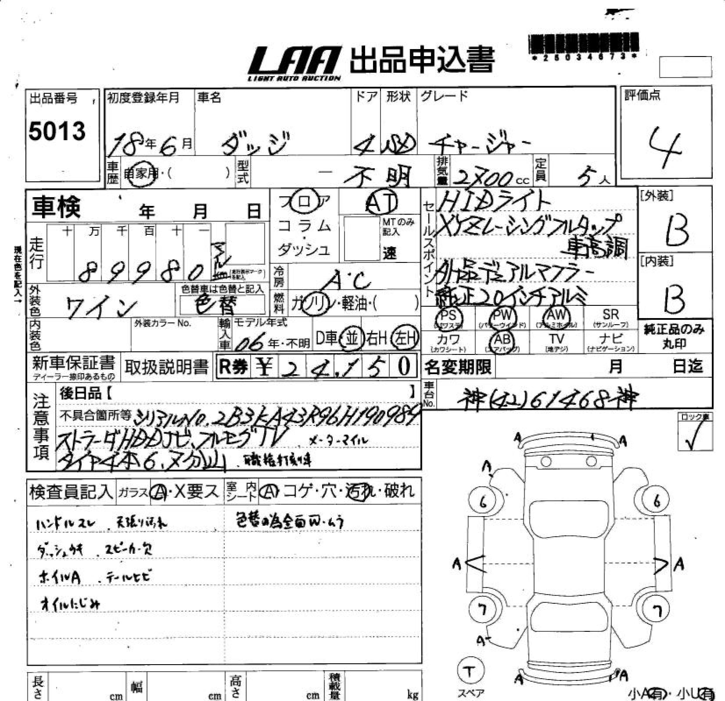 DODGE CHARGER 2006 г., лот № 5013
