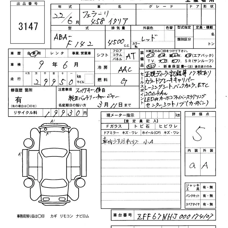 FERRARI 458 ITALIA 2010 г., лот № 3147