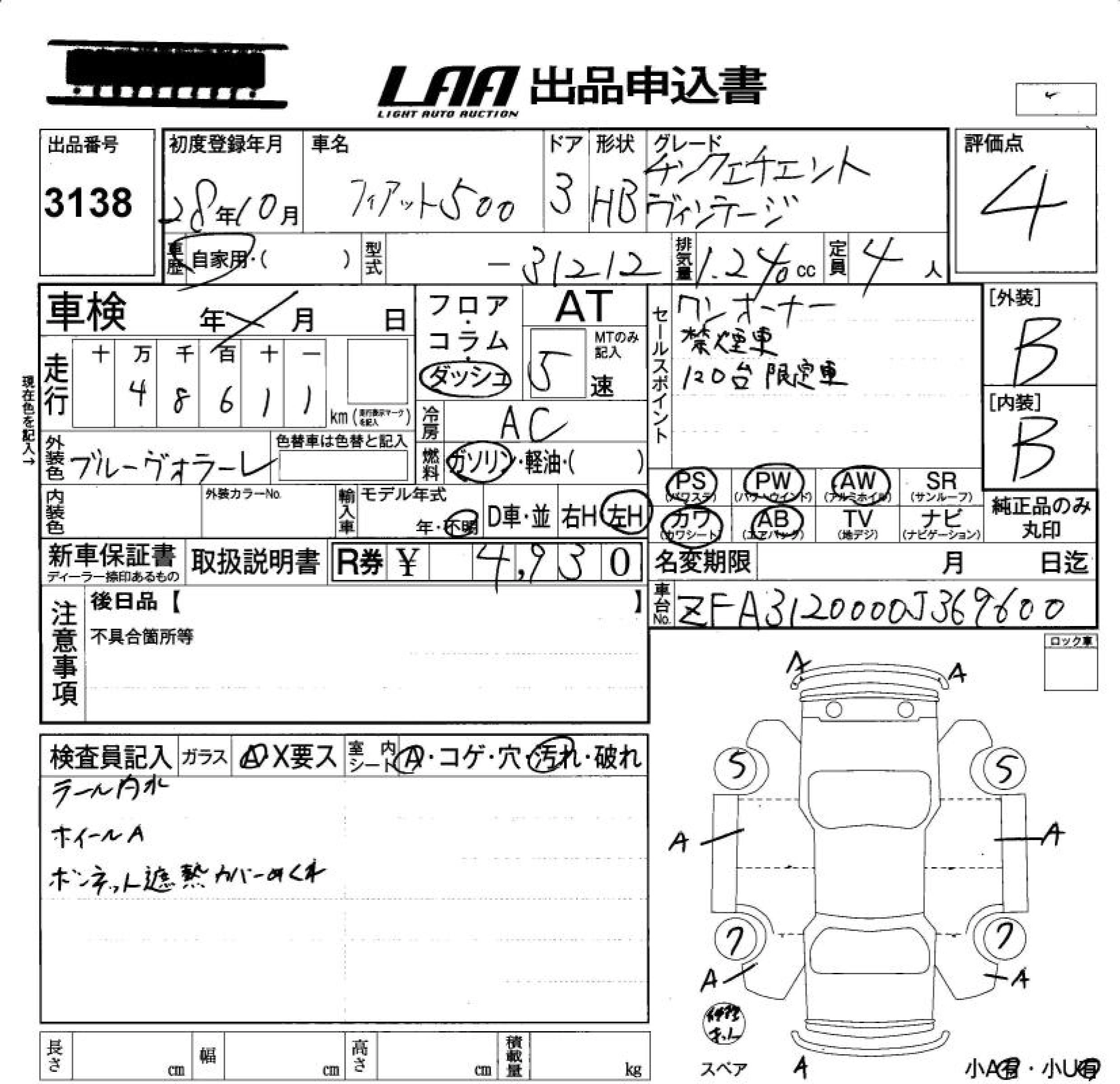 Статус не продан Лот 3138 Аукцион LAA Okayama Дата аукциона 31.10.2025