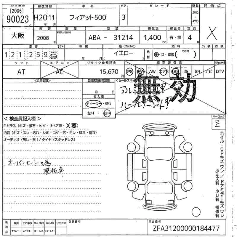 FIAT 500 2008 г., лот № 90023