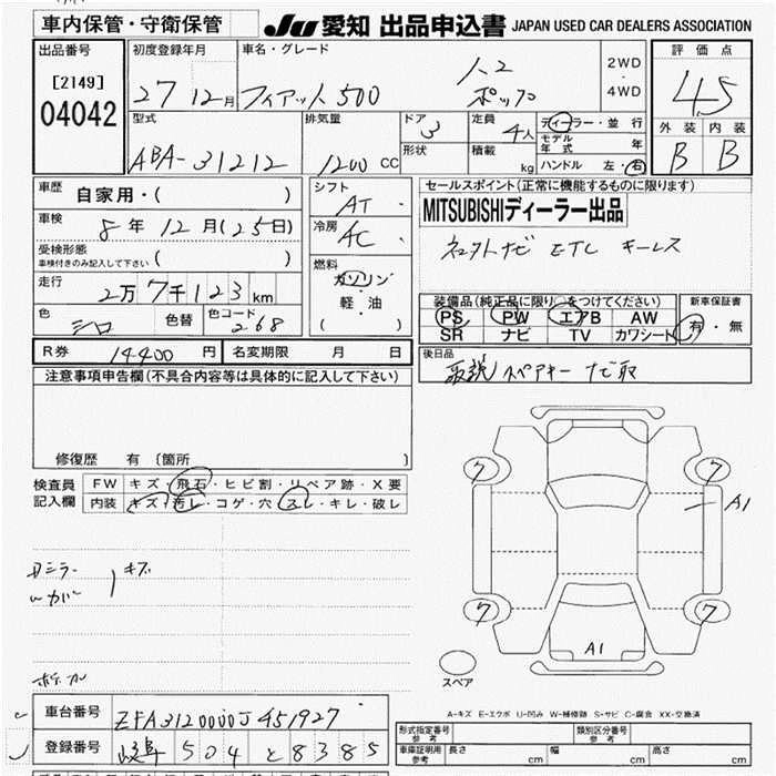 FIAT 500 2015 г., лот № 4042