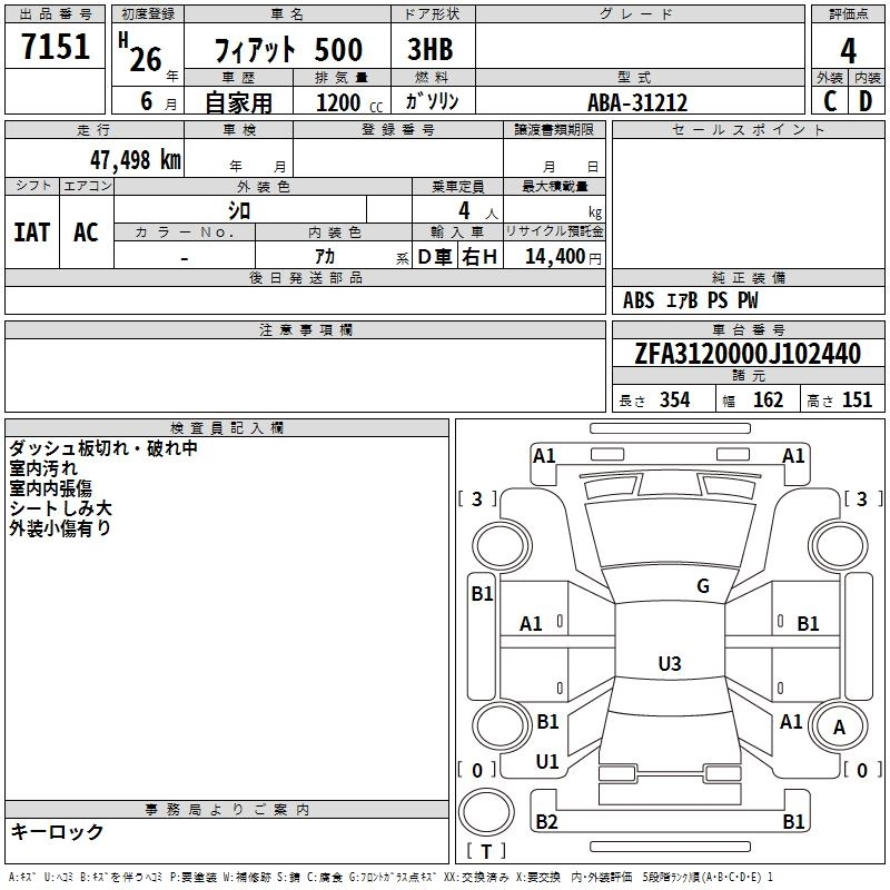 FIAT 500 2014 г., лот № 7151