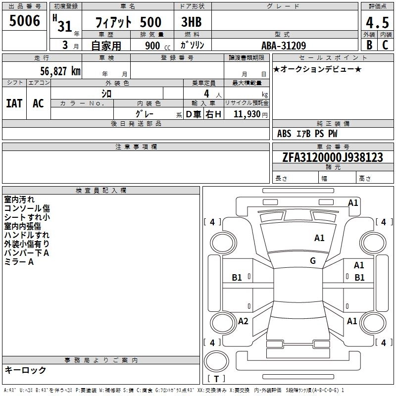 FIAT 500 2019 г., лот № 5006