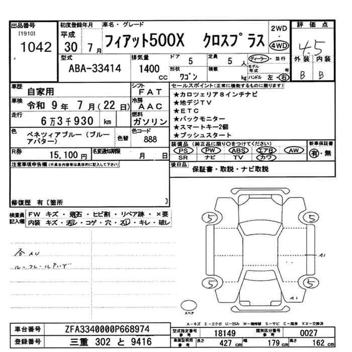 FIAT 500X 2018 г., лот № 1042