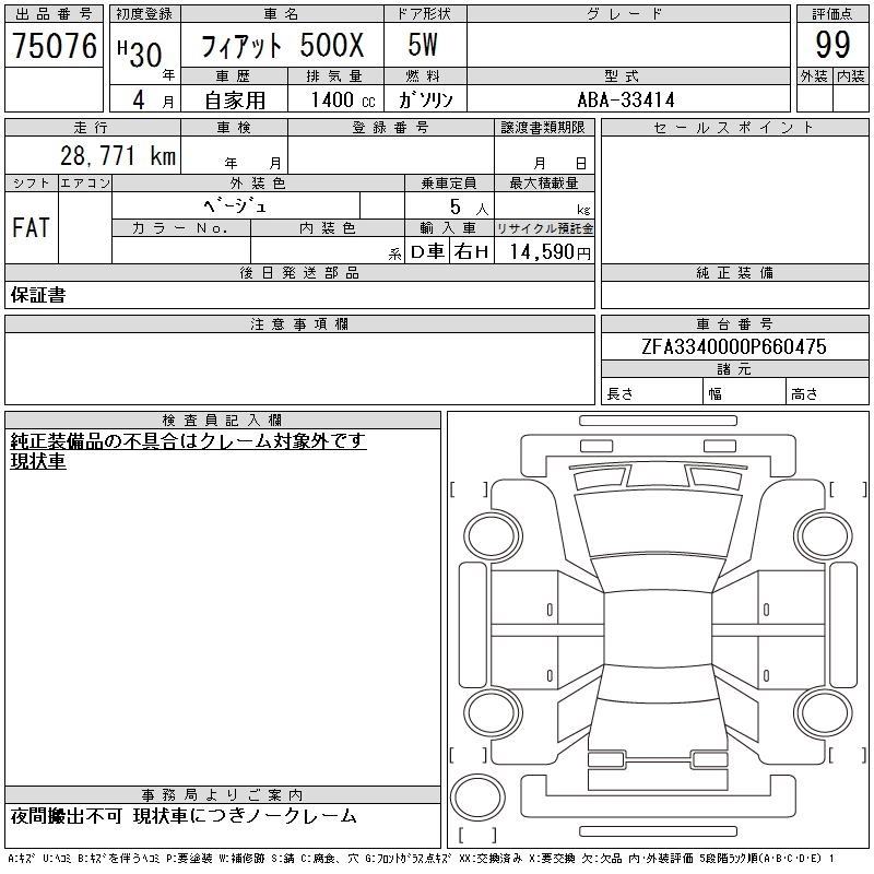 FIAT 500X 2018 г., лот № 75076