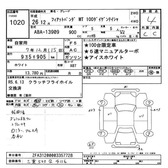 FIAT PANDA 2014 г., лот № 1020
