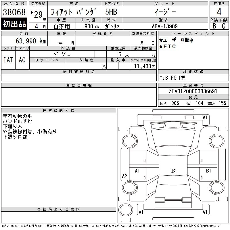 FIAT PANDA 2017 г., лот № 38068