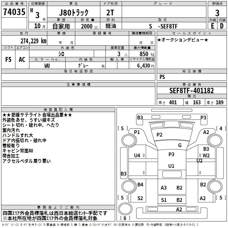 Статус выставлен на аукцион Лот 74035 Аукцион TAA Shikoku Дата аукциона 09.12.2025