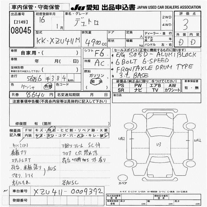 Статус выставлен на аукцион Лот 8045 Аукцион JU Aichi Дата аукциона 12.03.2026