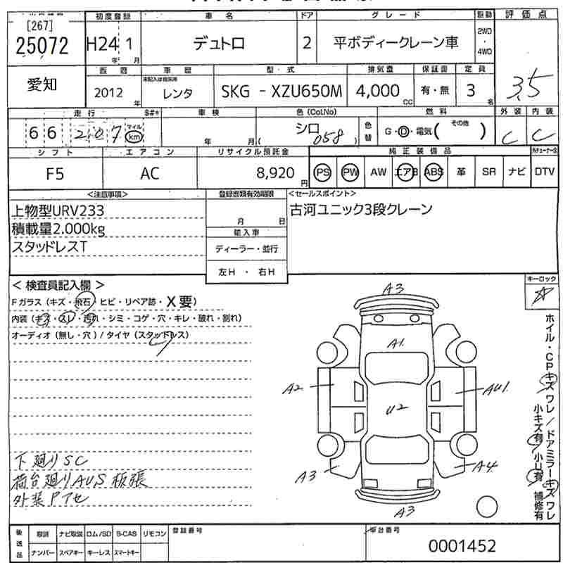 Статус не продан Лот 25072 Аукцион MIRIVE Aichi Дата аукциона 21.11.2025