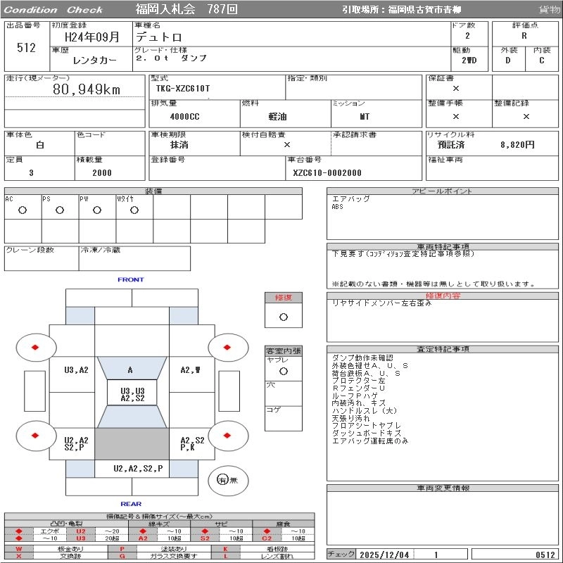 Статус выставлен на аукцион Лот 512 Аукцион ORIX Fukuoka Дата аукциона 09.12.2025