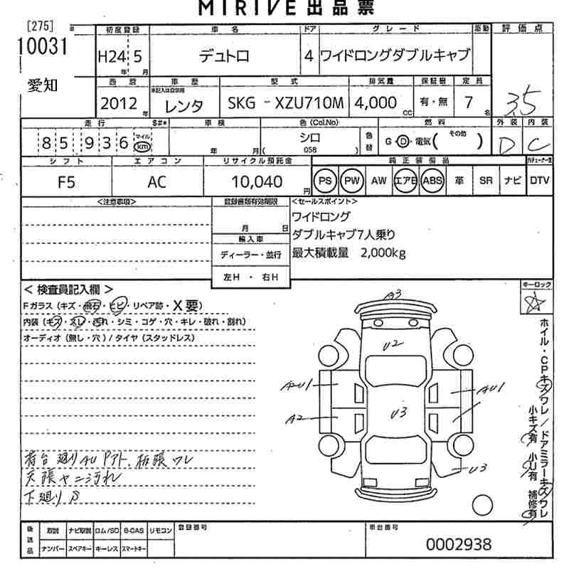 Статус не продан Лот 10031 Аукцион MIRIVE Aichi Дата аукциона 23.01.2026