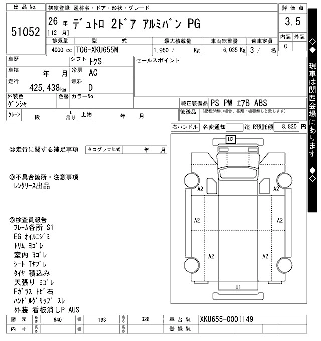 Год выпуска2014 Пробег 425 000 км КузовXKU655M Комплектация ALUMINUM VAN