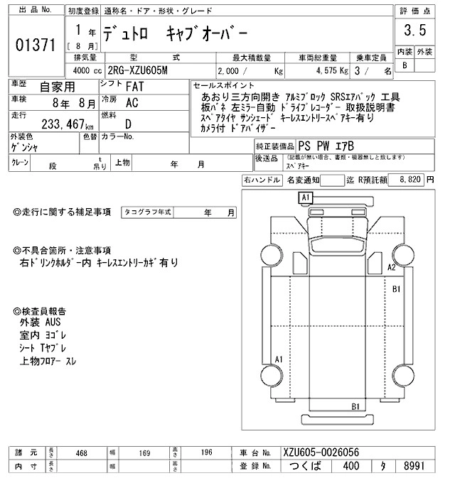 Статус выставлен на аукцион Лот 1371 Аукцион ARAI Oyama VT Дата аукциона 24.01.2026