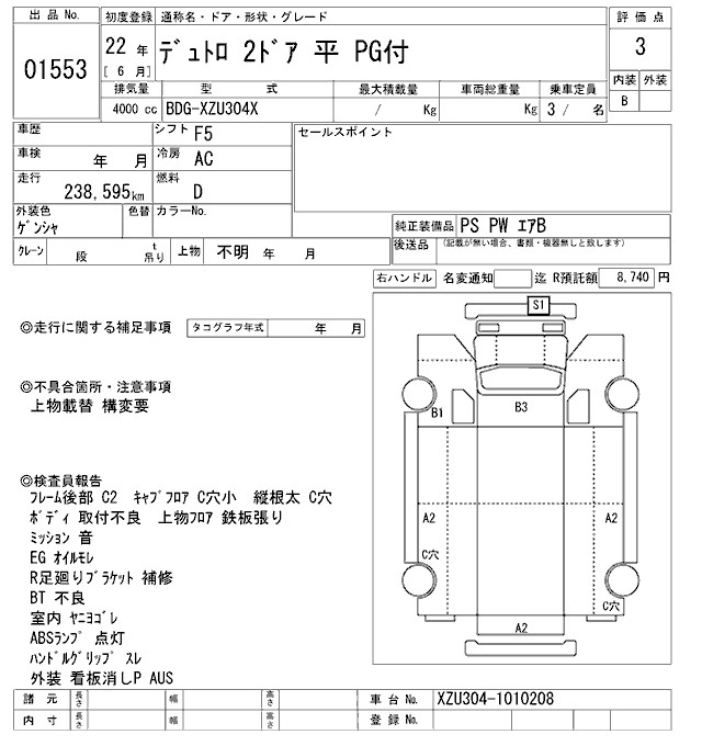 * Фрахт (плата за перевозку авто морским путём из Японии во Владивосток):- 60 000 ¥.