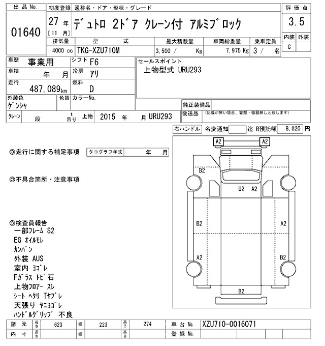 Год выпуска2015 Пробег 487 000 км КузовXZU710M Комплектация COMMON. CRANE